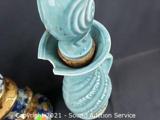 430 Lots including; Rifles, Loredano Rosin Calcedonia Murano Horse Sculpture, Frederic Remington Bronze Sculpture, Vtg. Redwing Crocks 5-20 Gallon, Antique Rustic Staple-National Excelsior Stove, Swarovski Crystal Sculptures, Various Crystal & Clear Glassware, Vtg. Jim Beam Decanters, Large Rustic Coffee Mill, Ornate Carved Thai Camphor? Wood Furniture, Vtg. Pendulum Grandfather, Mantel & Wall Clocks, Bear Rug, Vtg. Fishing Reels, Vtg. Cameras & Accessories, Assorted Vtg. Fine China (Spode, Noritake, Franciscan, Limoges, Lenox & More), Vtg. Fenton Daisy Fern Pattern Glass Shade Lamp, Assorted Art Glass, Assorted Crystal Ware (Waterford, Rosenthal, Shannon & more), Silver, Gold & Fashion Jewelry, Assorted Lapel Pins, Vtg. Glassware (Uranium, Amethyst, Black, Clear), Art Pottery, Jade Trinkets, Some Great Tool Lots, Lenox Christmas Tree w/Ornaments & CoA's, Samsung 40" 1080p LCD Backlit TV w/Remote, Louis L'Amour Western Literature, Compact Refrigerators, Chest Freezer, Vtg. Waterfall Furniture, Antique Lincoln Telephone & Telegraph Co. Phone & So Much More!!!