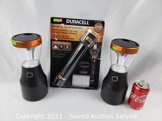 Lot #0270: 2 Duracell 1000lm LED Lanterns & 2500lm Flashlight