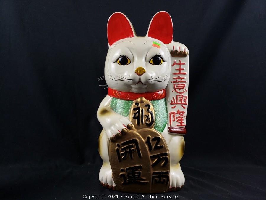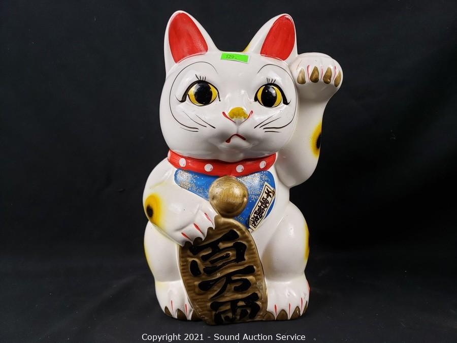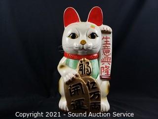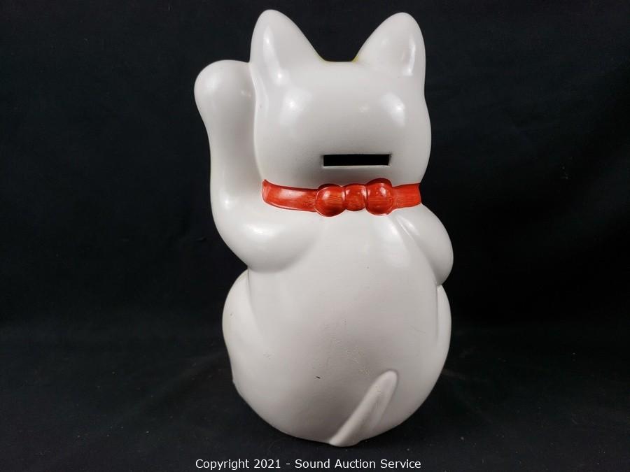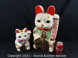 Lot #0129: 2 Lucky Cat Hand Painted Ceramic Coin Banks