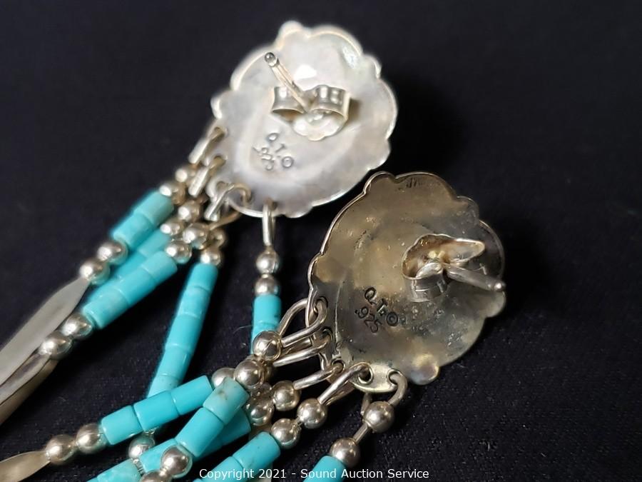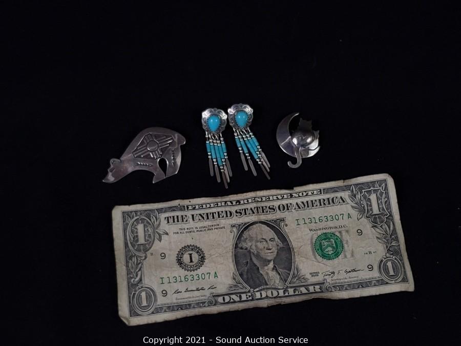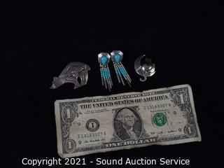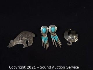 Lot #0308: 2 Native Sterling Pins & Earrings