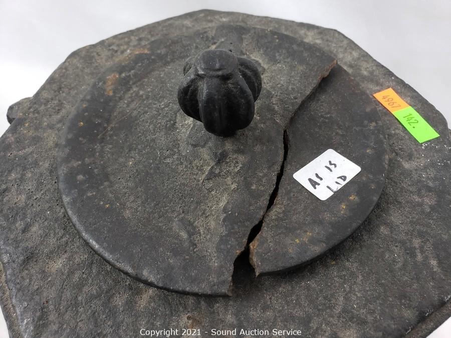 Lot Details: Lid on one is broke comes with piece. 3.5" x 9" Dia, 5" H x 8" dia, 8" H x 12" dia. Bowl is marked Sheigaki, largest has some Asian script on the bottom.