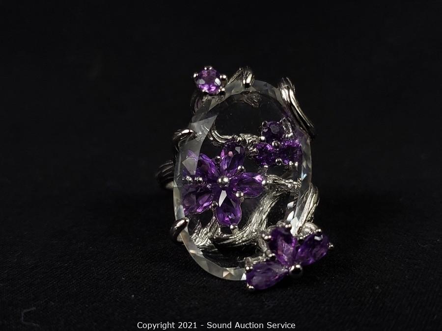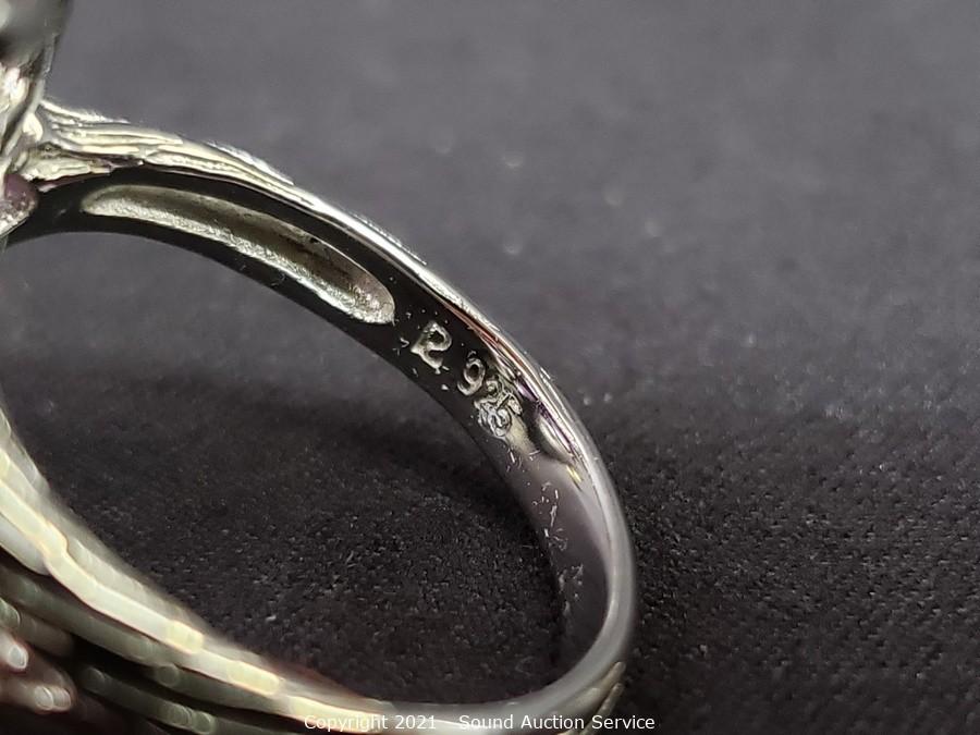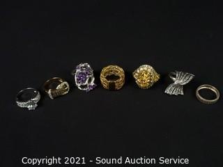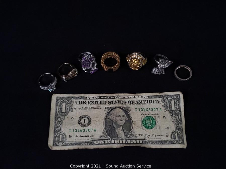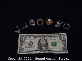 Lot #0299: 7 Sterling Stone Set Rings S: 7, TW: 42.6g