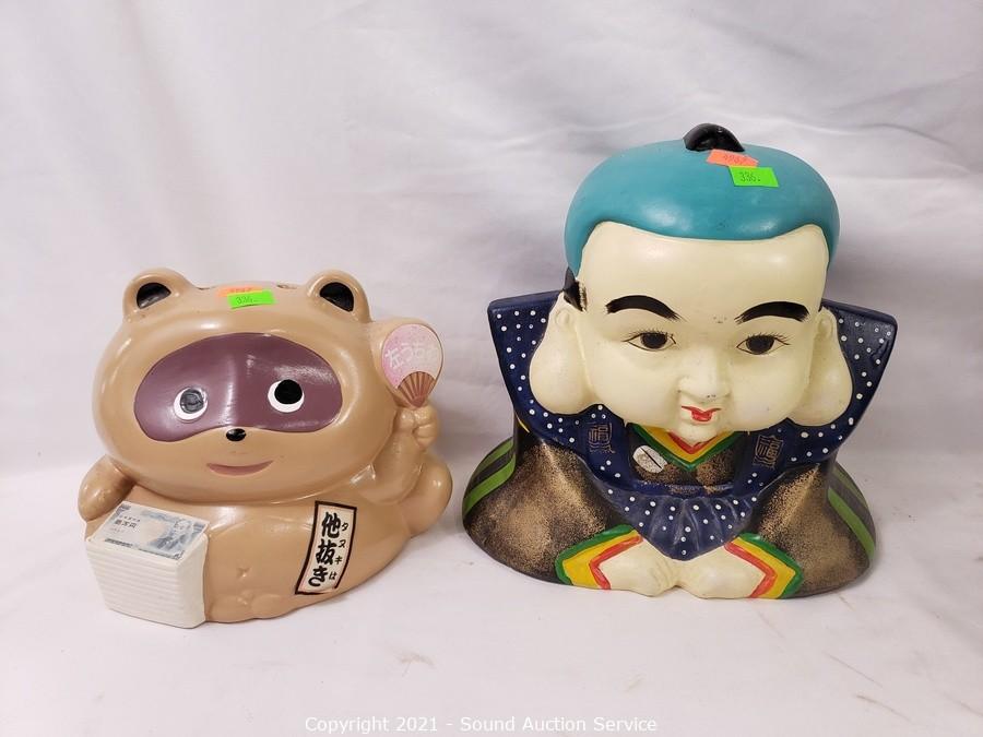 404 Lots including; Tons of Asian Collectibles & Decor (Vtg. Handcrafted Geisha Dolls, Hakata Porcelain Bisque Dolls, Cast Iron Samurai Helmets, Lucky Cat & Other Ceramic Coin Banks, Lanterns, China, Black Lacquer), Dooney & Burke, Coach & Other Handbags, Purses, Sterling & Fashion Jewelry, Collectible Porcelain Dolls, TY Beanie Baby Dolls, Royal Doulton Vogue Fine China, Several Vtg. Pendulum Clocks, Germany Cuckoo Clock, Tall clock, Chainsaw Bear Carvings, Red Painted Wood Garden Bridge, Steiff Bears, Stoneware Crocks, Massaging Recliners, Craftsman Riding Lawn Mower, Glideaway Massaging Adjustable Queen Bed, Curio Cabinets, Chicken/Rabbit Coops, Antique Barrel butter Churn, Carved Asian Theme Tables, Ornate Carved Hope Chest, Chair Lift, Pet Food, & So Much More!!!