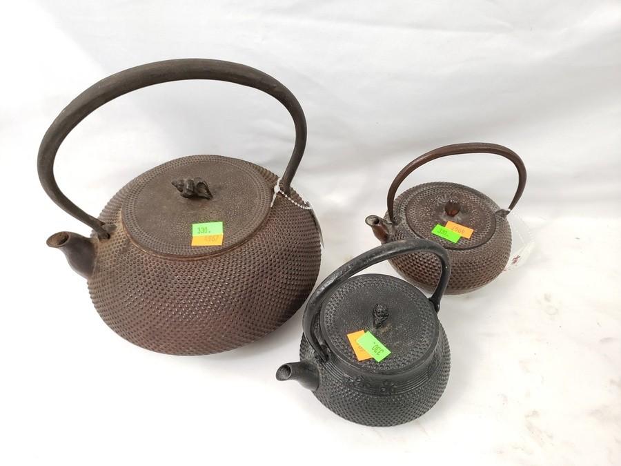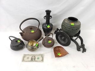 Lot #0330: Assorted Cast Metal Asian Tea Kettles & Decor