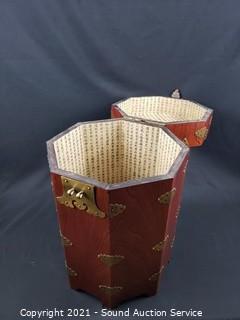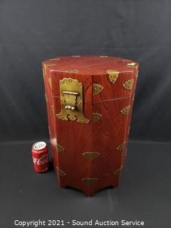Lot #0022: Oriental Cherry Finish Octagon Container