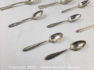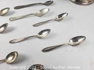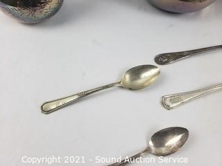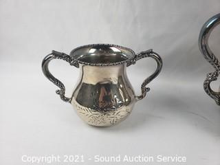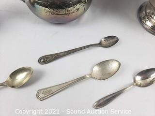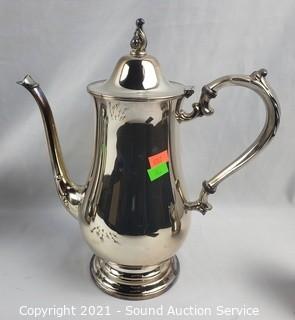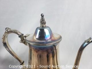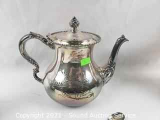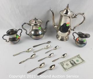 Lot #0076: Silver Plate Tea/Coffee Pots, Cream, Sugar, Spoons