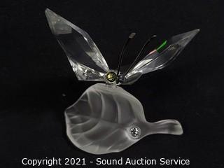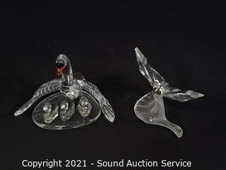 Lot #0099: 2 Swarovski Crystal Geese & Butterfly Sculptures