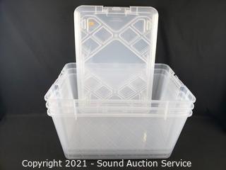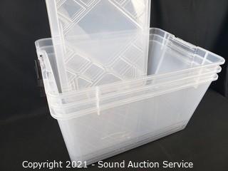 Lot #0037: 3 Clear Plastic Totes w/Lids