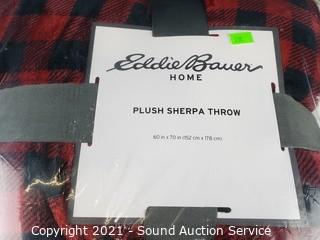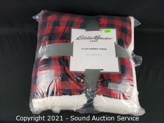 Lot #0238: Eddie Bauer Red Plaid Plush Sherpa Throw