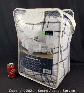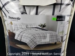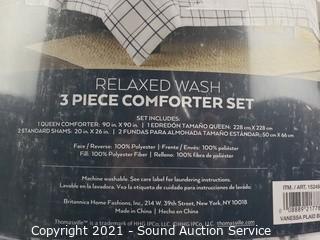 Lot #0308: Thomasville Queen 3pc Blue/Wht Comforter Set