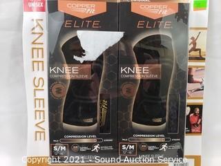 Lot #0187: 2pk Copper Fit Elite Knee Sleeves S: S/M