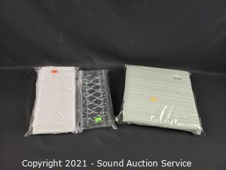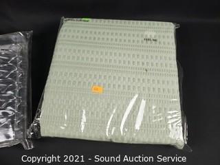 Lot Details: Seafoam green curtain, liner & 12 curtain hooks.