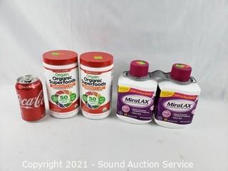 Lot #0254: 2pk MiraLAX Stool Softener & Super Food Powder