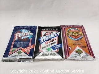 Lot #0057: 3 First Year Sport Card Packs, #1 Beckett & Patch