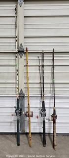Lot Details: Wright McGill 8.5ft rod w/Penn Jigmaster 500S reel, Mitchell 6ft S601SBM rod w/Penn No.149 Deep Sea Reel, & other w/Penn No.49 Reel.