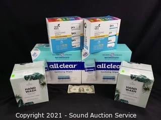 Lot Details: (2) 4pk 200 wipes, (2) 320ct wipes, (2) 6pk 8oz Hand Wash. All appear sealed.