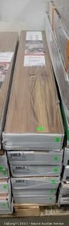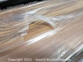 Lot Details: Clay Canyon Teak. 17.18sq.ft. per bundle, 7-1/2" x 47-1/2" x 3/8" planks. All appear to be sealed. May or may not have some minor damage, chipped corners etc. As is.