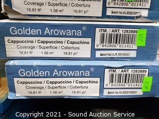 Lot Details: Cappuccino color, waterproof. 16.18sq.ft. per bundle, 48" x 7.2" x 6mm planks. Packages & planks may or may not have some damage, chipped corners etc. As is.
