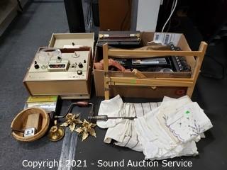 346 Lots including; Dining Table & Chairs, Dressers, Pine Chest, Hand Painted Milk Can, Assorted knitting & Sewing Supplies, Sewing Machines, Vintage Mahogany Telephone Table, 173ct 9mm Luger Ammunition, Fashion Jewelry, Vintage Records, Vtg. Camera's, Pet Food, Blankets, Cookware, Dish Sets, Kitchen Appliances, Various Lighting, Rugs, Vtg. Photos & Ephemera, Vtg. Enrico Roselli Accordion w/Sheet Music & Case, Bed & Bath, Health & Beauty Products, Laminate Wood Flooring & Much More!!!