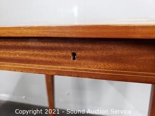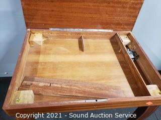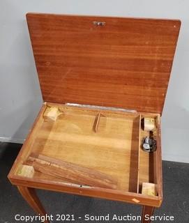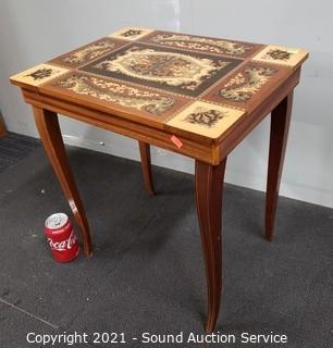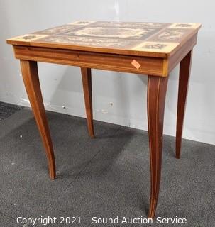 Lot #0026: Vtg. Ornate Inlaid Musical Lift Top Table