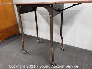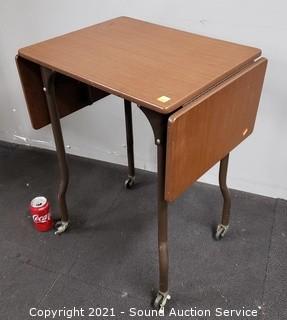 Lot #0025: Vtg. Rolling Drop Leaf Table