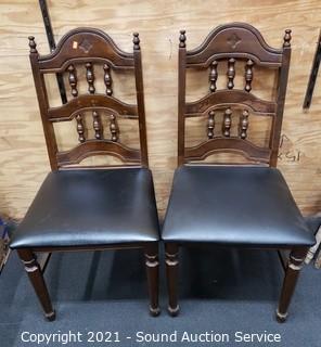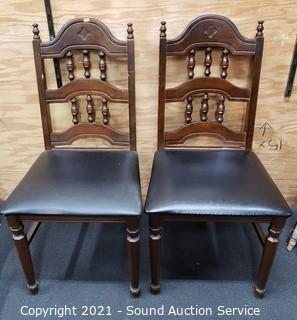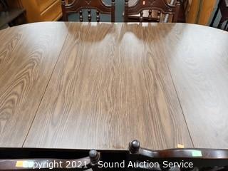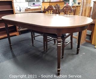Lot #0001: Vtg. Veneered Walnut Top Table w/6 Chairs