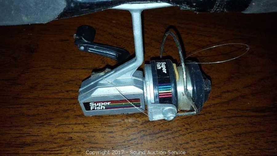 Fiberglass rod with Cardinal 752S reel, fiberglass rod with cork handle and shimano, carbon 6.5ft rod 10-25lbs line 2oz lure weight with superfish reel, eagleclaw by wright madill spinning combo rod 4-12lbs line 1/4 oz to 5/8oz lure weight with zebco reel.