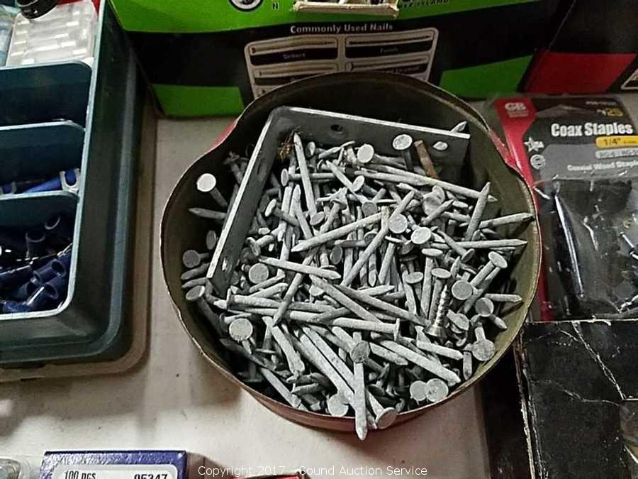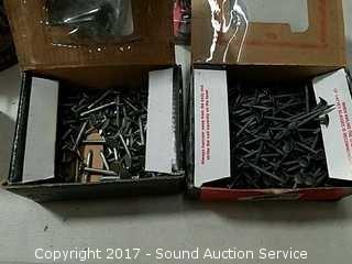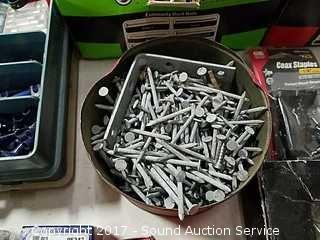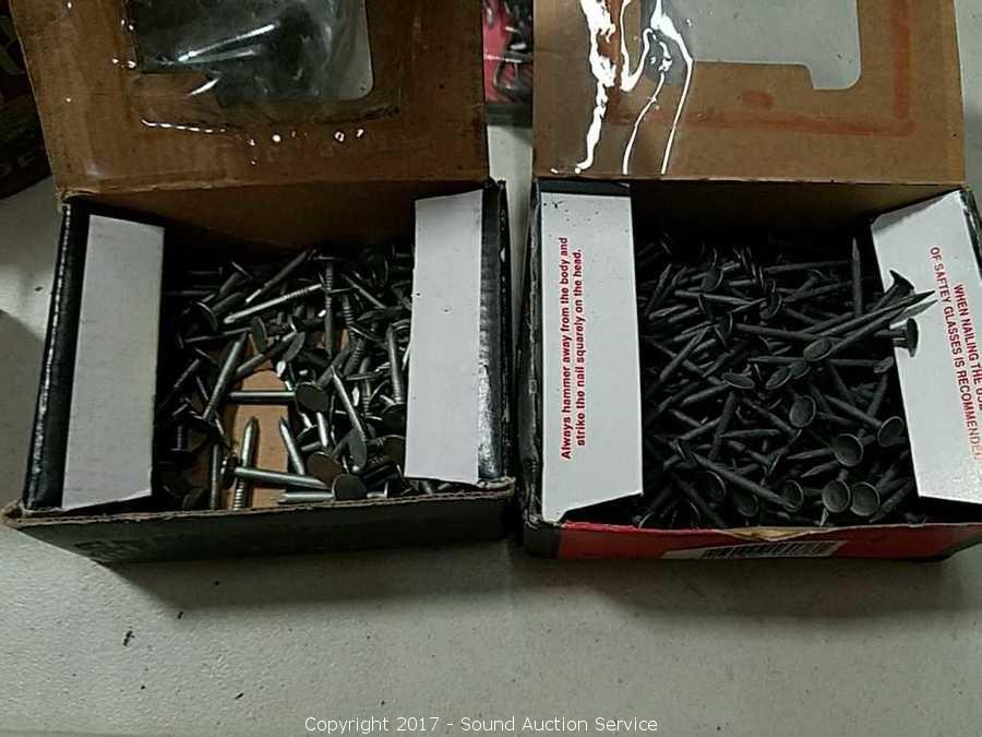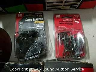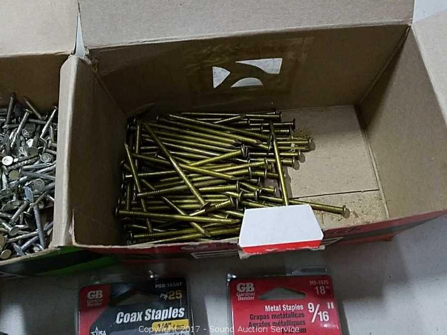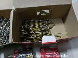 Various nails, staples electrical hardware & more