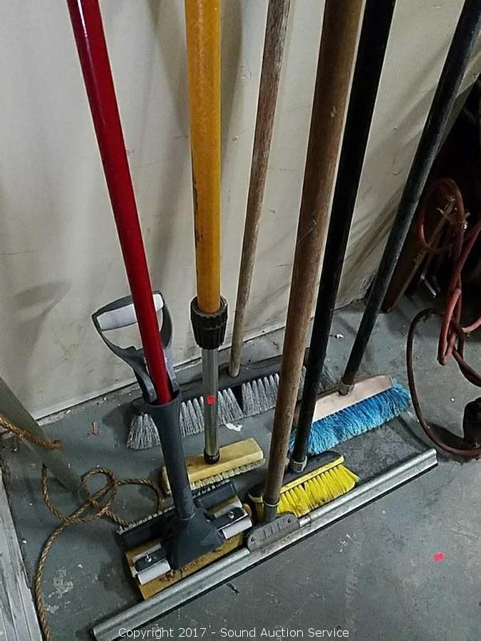 Mop, automotive brushes, push broom and squeegee.