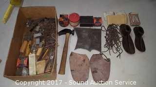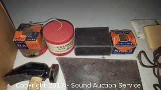 Lot #0075: Vtg. Cobbler Repair Kit & Anvils Hammer & More
