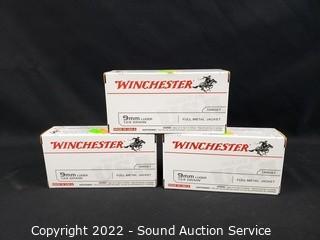 Lot #0075: 3 Winchester 50ct 9mm Luger Ammunition