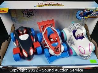 Lot #0196: 3pk Marvel Spidey Webbed Wheelies Toys