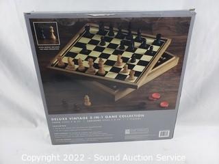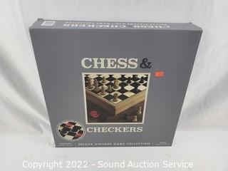 Lot #0250: Deluxe Vtg. Chess & Checkers Board Game Set