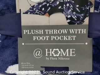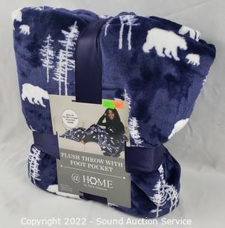 Lot #0412: Home Blue Plush Throw w/Foot Pocket