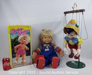 Lot #0312: 2 Vintage Dolls & Pinocchio Puppet