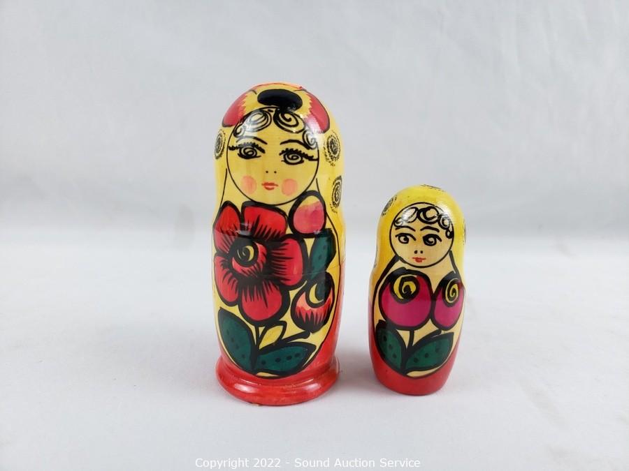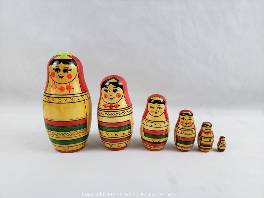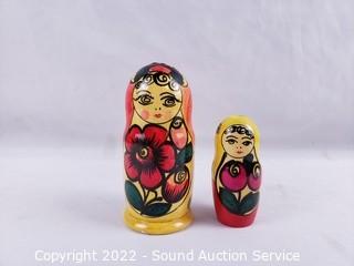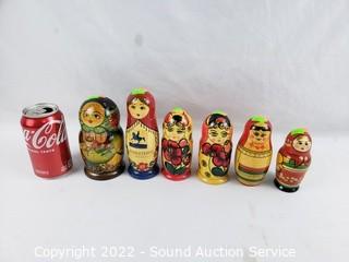 Lot #0043: 6 Hand Painted Russian & Other Wood Nesting Dolls