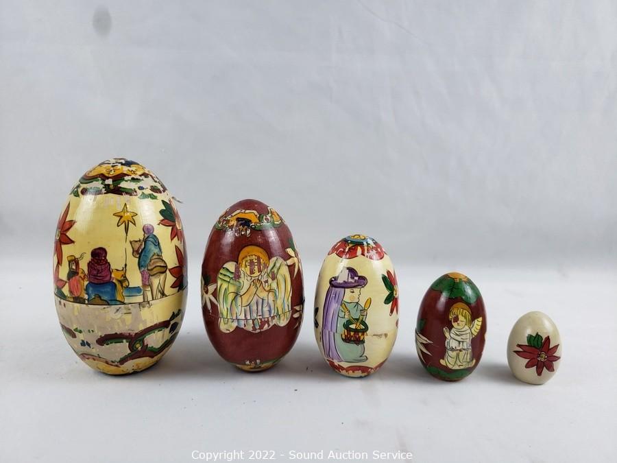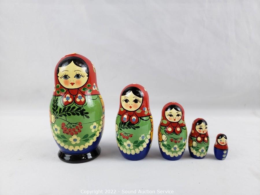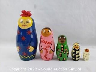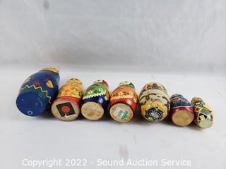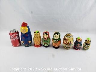 Lot #0044: 7 Hand Painted Russian & Other Wood Nesting Dolls
