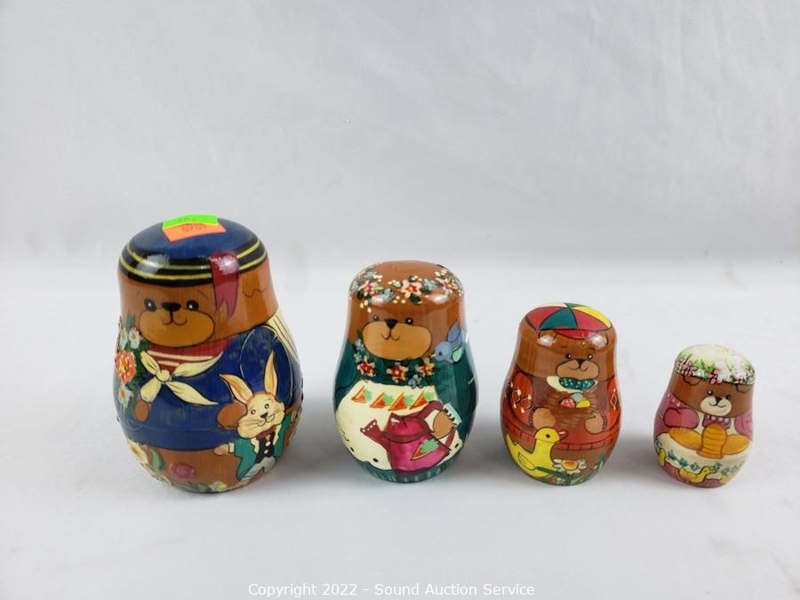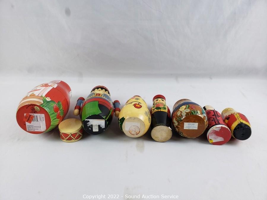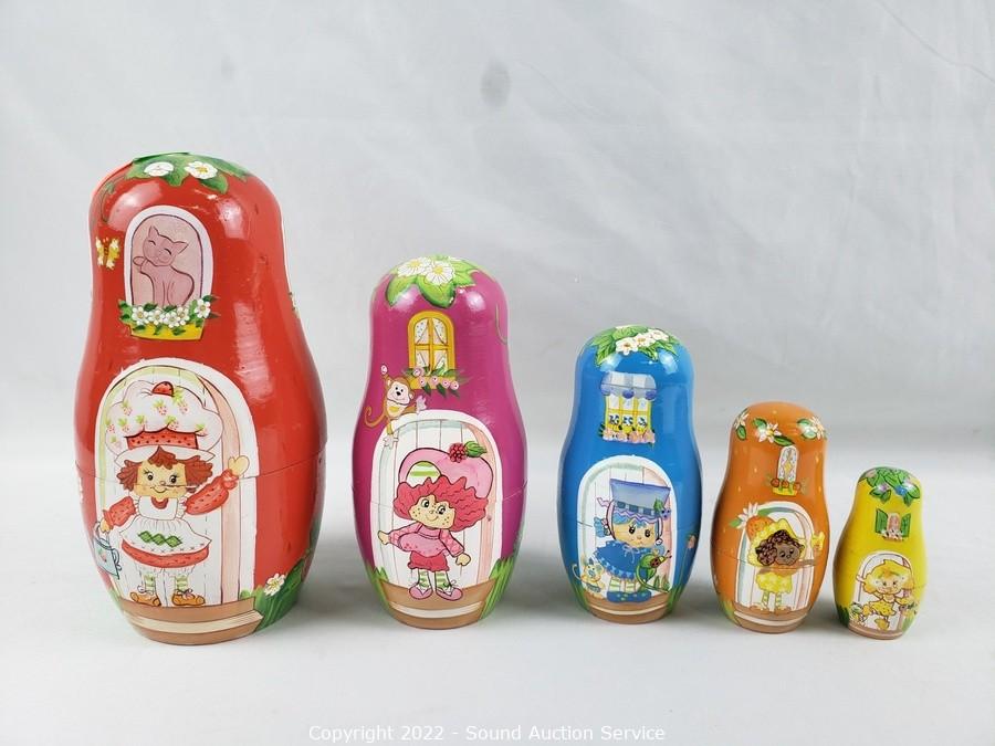 Lot Details: 1 has a Russian tag, one is Strawberry Shortcake. (1) 5pc, (2) 3pc, (1) 4pc, (2) 1pc. Unsure of snowman. Largest outers 4.25" to 7.5" tall. Refer to photos for condition.