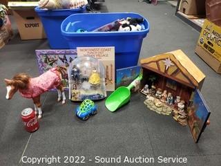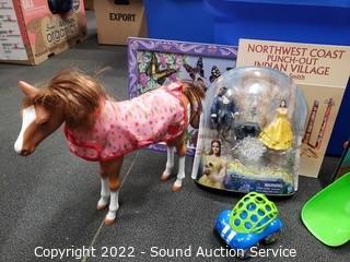 403 Lots including; Dixie French Provincial Ivory 5-Drawer Open Hutch, Antique Mahogany Dark Stained Table, Vtg. Round 2-Tier Mahogany Side Table, Vtg. Russian & Other Wood Nesting Dolls, Assorted Native Decor, Dolls, Swarovski Crystal Sculptures, Antique Handcrafted Wood Freestanding Harp, Marbles, Vintage Glockenspiel Xylophone, Various DVD's, Various Wizard of Oz Collectibles, Barbies Dolls, Disney Collectibles, Various Collectibles Porcelain & Vinyl Dolls, Assorted Copper Ware, 4 Crystal Electric Hurricane Lamps, Assorted Stars Autographed Photos, Assorted Campbell's Collectibles, Assorted Flintstones Collectibles, The Greenbrier Handcrafted Dulcimer, Various Artwork, Purple Leather Coach Handbag, Vintage Record Albums & So Much More!!!