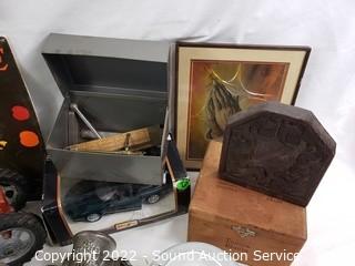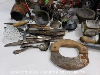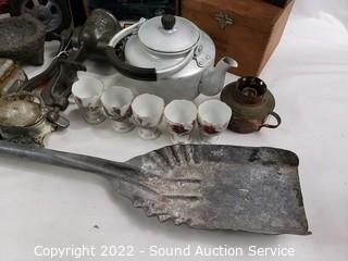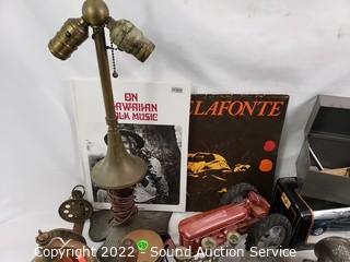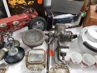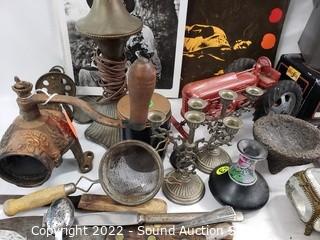 403 Lots including; Dixie French Provincial Ivory 5-Drawer Open Hutch, Antique Mahogany Dark Stained Table, Vtg. Round 2-Tier Mahogany Side Table, Vtg. Russian & Other Wood Nesting Dolls, Assorted Native Decor, Dolls, Swarovski Crystal Sculptures, Antique Handcrafted Wood Freestanding Harp, Marbles, Vintage Glockenspiel Xylophone, Various DVD's, Various Wizard of Oz Collectibles, Barbies Dolls, Disney Collectibles, Various Collectibles Porcelain & Vinyl Dolls, Assorted Copper Ware, 4 Crystal Electric Hurricane Lamps, Assorted Stars Autographed Photos, Assorted Campbell's Collectibles, Assorted Flintstones Collectibles, The Greenbrier Handcrafted Dulcimer, Various Artwork, Purple Leather Coach Handbag, Vintage Record Albums & So Much More!!!