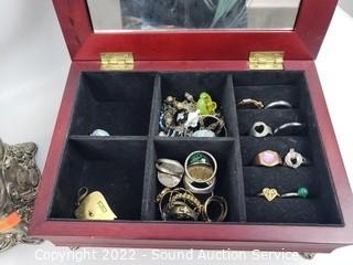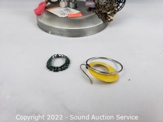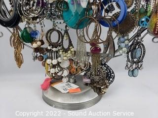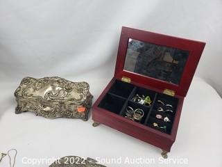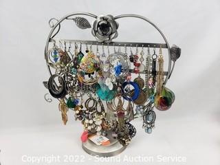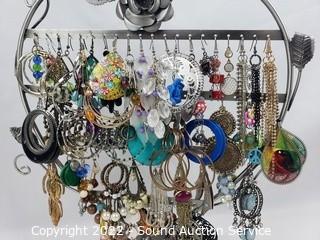Lot #0313: Earring Rack w/Earrings, Jewelry Boxes, Rings