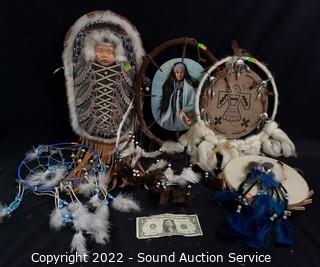 Lot #0189: Native Handcrafted Drum, Dream Catchers & Decor