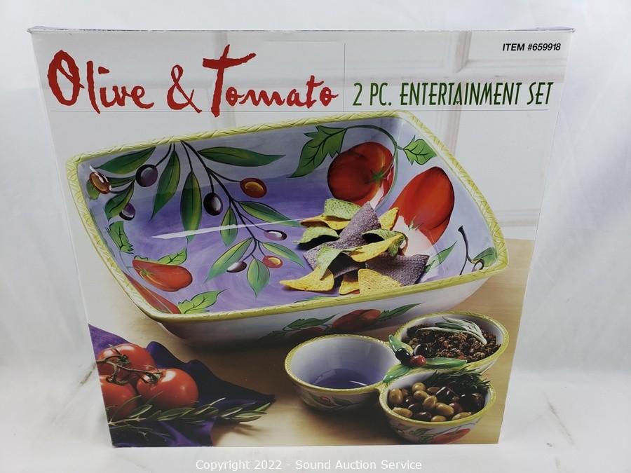 Lot #0146: Olive & Tomato Hand Painted 2pc Entertainment Set