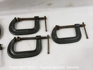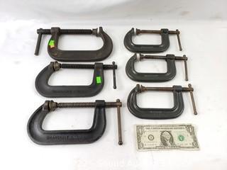 Lot #0214: 5 Hargrave & 1 Armstrong 3" & 4" C-Clamps