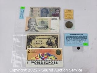 Lot #0012: Ancient Roman Coin & Other Foreign Currency