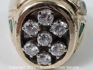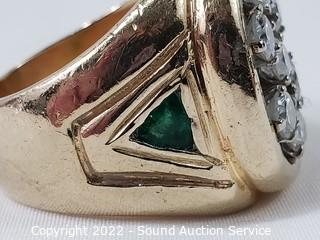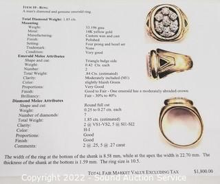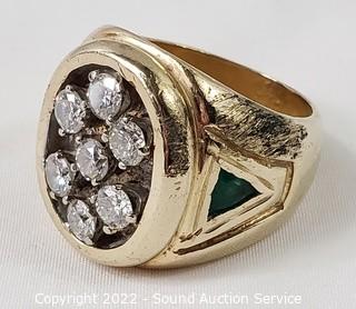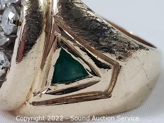 Lot #0004e: Appraised Men's 14k Gold, Diamond & Emerald Ring