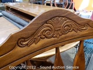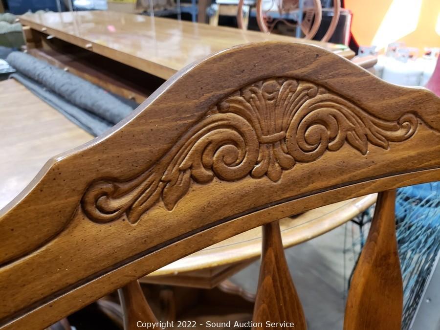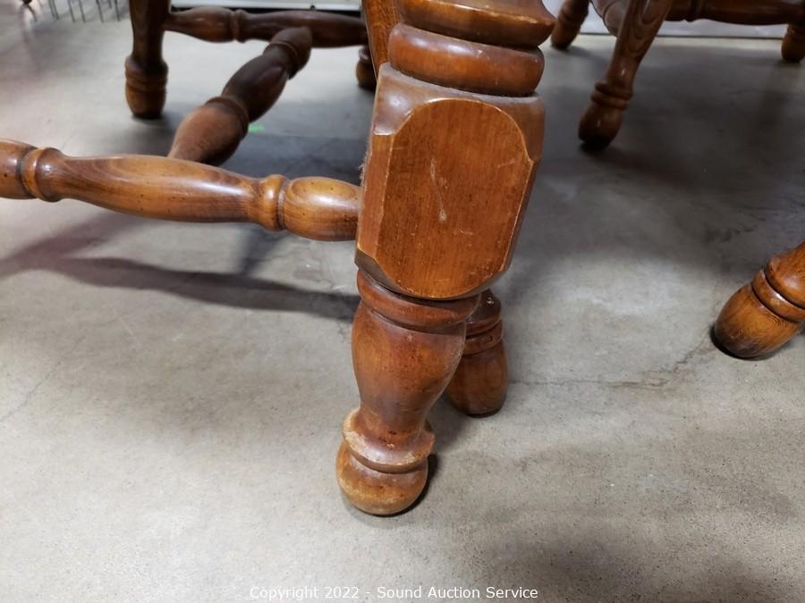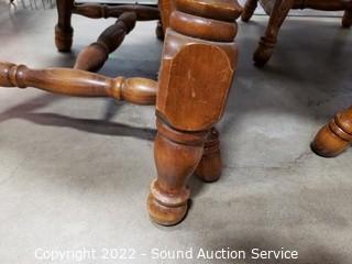 Lot Details: Some minor wear to the table legs, otherwise great condition. 29" H x 59" x 41" with (2) 9" legs.