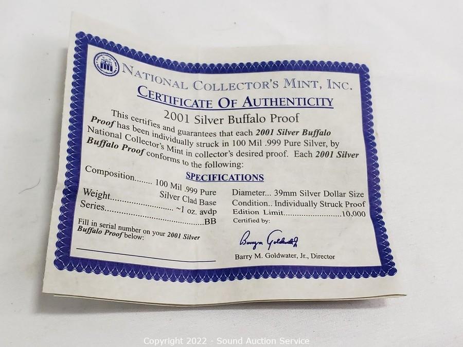 Lot #0028: 2001 Silver Buffalo Proof w/CoA