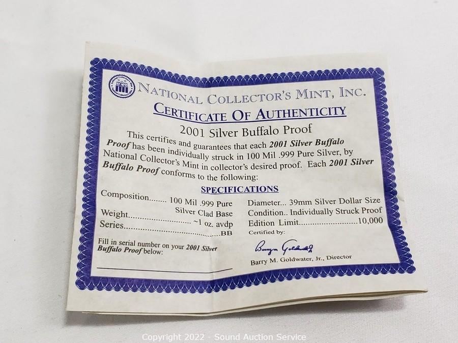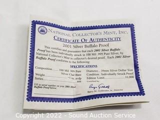 Lot #0030: 2001 Silver Buffalo Proof w/CoA