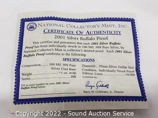 Lot #0031: 2001 Silver Buffalo Proof w/CoA